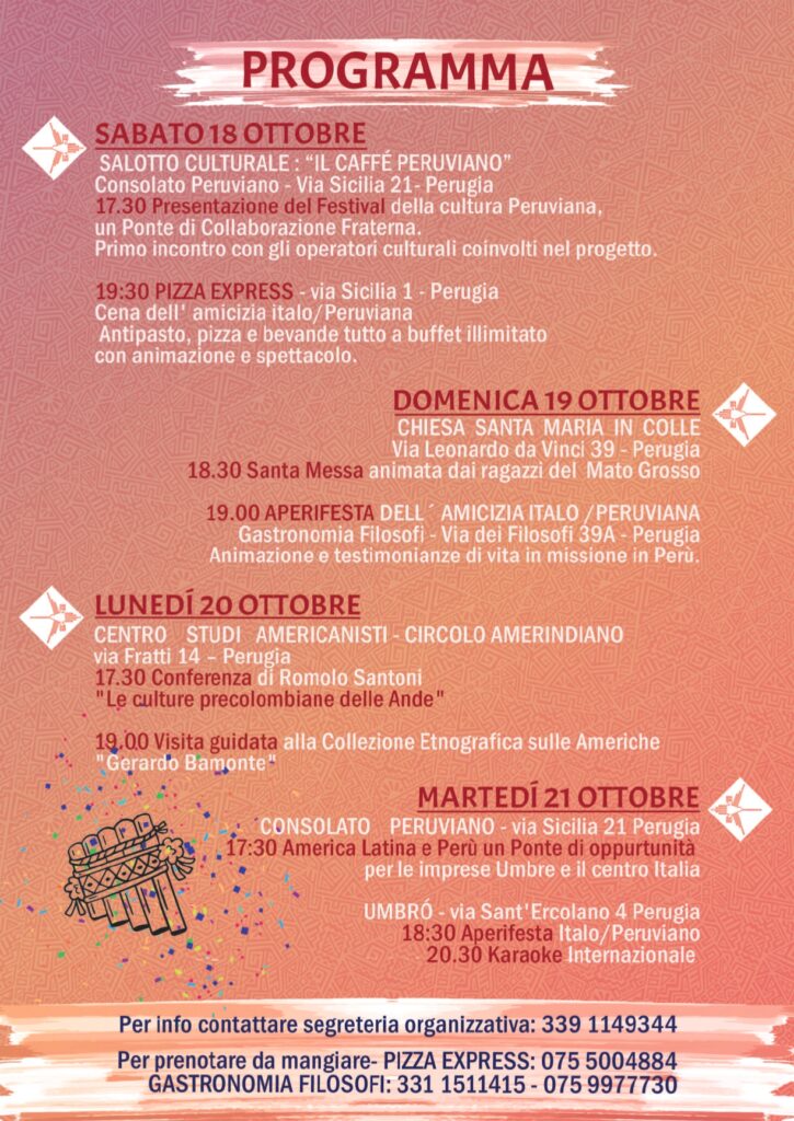 L’iniziativa è patrocinata dal Consolato del Perù a Perugia in stretta collaborazione con le associazioni della